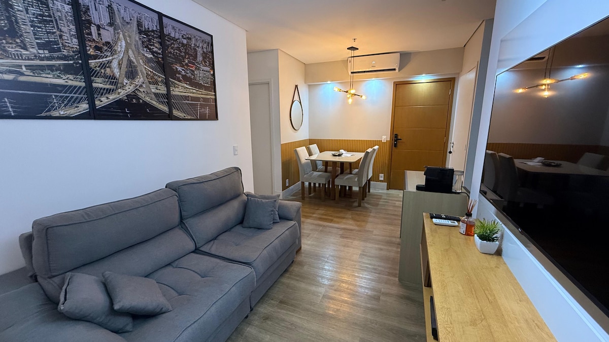 Modern lägenhet i Bela Vista, det bästa och mest strategiska området i Osasco! Nära Melicidade, Ifood och Bradesco (Cidade de Deus), med enkel tillgång till São Paulos västra zon. Säkra, välutrustade och utformade för din komfort och bekvämlighet – perfekta för arbete eller fritidsvistelser. På bottenvåningen kan du njuta av en restaurang och Oz Comedy Club, så att du kan äta middag och koppla av utan att lämna byggnaden.