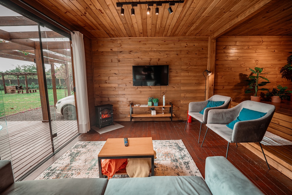Desfrute de dias tranquilos em um chalé simples, de madeira rústica, ideal para quem busca sossego e contato com a natureza. Conta com piscina, churrasqueira, lareira externa e fogo de chão. No interior, há calefator e fogão a lenha. O mezanino possui duas camas de casal e ar-condicionado, com acesso por escada, podendo não ser ideal para idosos, crianças ou pessoas com mobilidade reduzida. 20 min da praia de Atlântida Sul e 1h de Porto Alegre. Ambiente aconchegante e sem luxo.