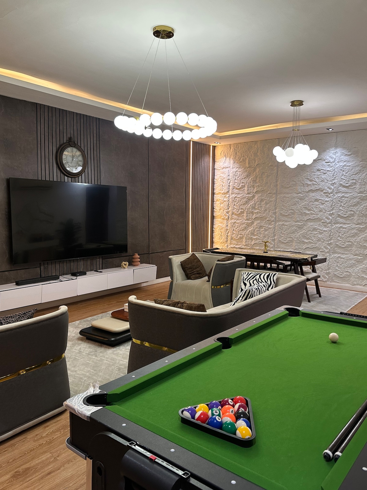 "Välkommen till ditt lyxiga hem hemifrån! Kliv in i vår fantastiska lägenhet med 3 sovrum, prydd med sofistikerade möbler som blandar komfort och stil sömlöst. Vårt välutrustade kök och badrum säkerställer bekvämlighet och avkoppling under hela din vistelse. Oavsett om du är här för affärer eller fritid, njut av den ultimata komforten och njut av den perfekta balansen mellan elegans och praktiska egenskaper. Boka nu för en oförglömlig upplevelse!"