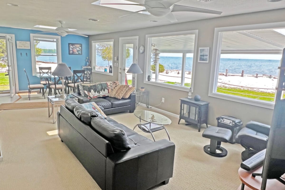 Boka en getaway till The Blue Palm idag! Nyligen uppdaterad, orörd 3:e våningen vid vattnet lägenhet, som erbjuder dig oöverträffad utsikt över Lake Erie & The Islands. Du kommer att känna som om du sitter ovanpå sjön, med lugnande ljud av vågorna som slår mot stranden strax bortom solrummets fönster. *Gå 5 minuter till Jet Express & 10 till Downtown *Koppla av i den uppvärmda poolen och bubbelpoolen vid sjön *Njut av lugna promenader längs den privata stranden *1 fot ingångspool och expansiv lekplats för barnen