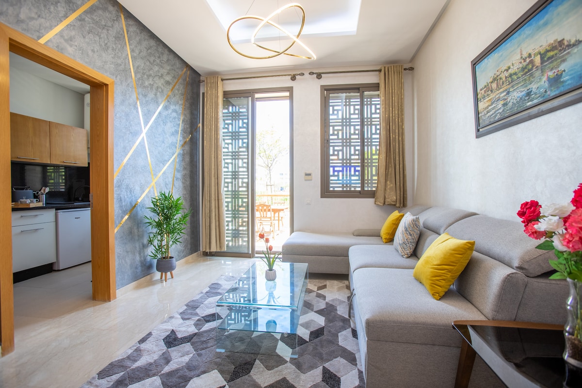 Upplev modern lyx i hjärtat av Hassan, Rabat. Denna skräddarsydda studio blandar sömlöst modern design med mysig komfort. Beläget i det charmiga Hassan-området är du perfekt belägen för att utforska Rabats rika kultur och livliga scen. Oavsett om du är här för arbete eller fritid erbjuder denna urbana fristad den perfekta blandningen av stil och komfort. Studion är fullt utrustad för att säkerställa en lyxig vistelse, där varje detalj har valts noggrant.