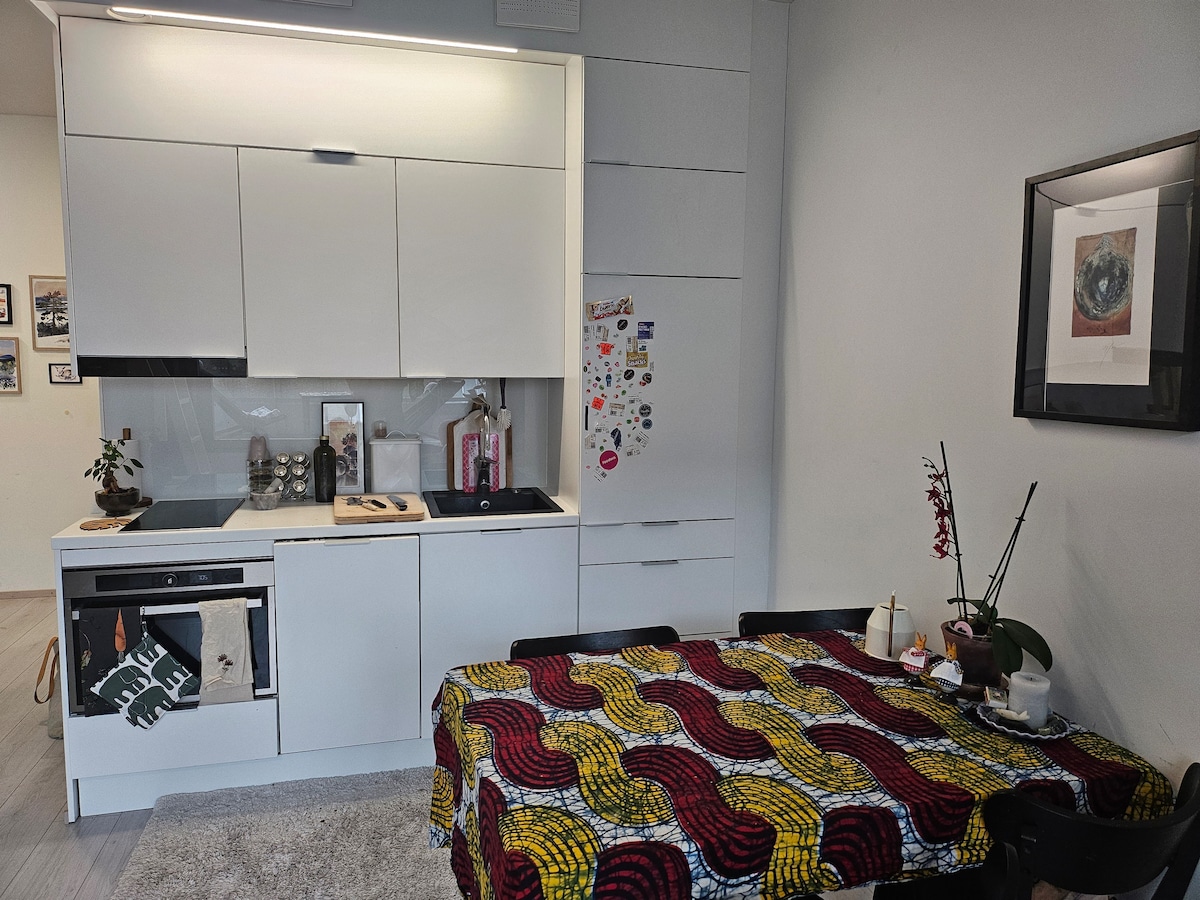 En underbar studio i ett utmärkt läge! Den ljusa och rymliga studion ligger precis intill parken Ainola. En kort promenad till centrum. Lägenheten har högkvalitativ utrustning: t.ex. induktionsspis, integrerad diskmaskin, integrerad ugn, tvättmaskin med torktumlare. Lägenheten har stilfull inredning och vackert porslin. Det finns 160 cm dubbelsäng och en tredje säng som luftmadrass. En stor inglasad balkong med sittgrupp. 43" smart-TV (t.ex. Netflix), höghastighetsinternet (200/200).