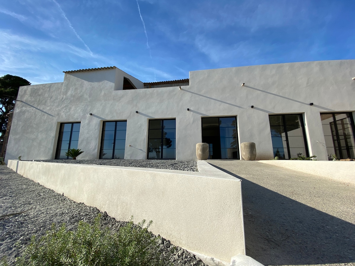 Hus på 300 m2 på landsbygden med utsikt över vingårdarna ... Inklusive ett vardagsrum på över 100 m2, 5 sovrum, 5 badrum, 6 toaletter. En inomhuspool som är uppvärmd året runt ... Allt öppet mot naturen med ett utomhusområde på över 7000 m2, inklusive en sommarsalong med en utomhuspool och en petanquebana ... Perfekt för en vistelse med familj eller vänner! (Eluttag för laddning av elfordon som tillval)