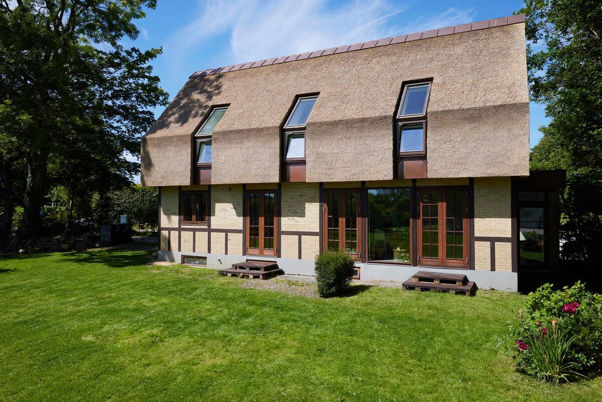 Relax alone or with the whole family at this peaceful place to stay. Enjoy the long views and the green surroundings. The place is 20 minutes car ride, 30 minutes bus or tram and 45 minutes bikeride from central Aarhus. Theres a 500m2 greenhouse on the plot with a dining area and gas grill, creating an forever summer garden from april to oktober. We are very interested in longer stays, so If that us what you are looking for do not hesitate to contact us and we will find a solution.