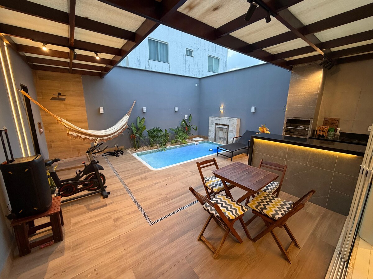🏖️ Hus till uthyrning i ett gated community nära stranden 🏖️ Välkommen! ✨ Vårt hus har kärleksfullt förberetts för dig att njuta av det bästa av São Luís med komfort, praktiska och oförglömliga stunder. Beläget i grannskapet Araçagy. Det ligger nära restauranger, stormarknader och stranden i ett lugnt och lättillgängligt område. Perfekt för familjer och grupper av vänner och par. Det finns Wi-Fi, en pool, en grill, två kök, två parkeringsplatser och luftkonditionering.
