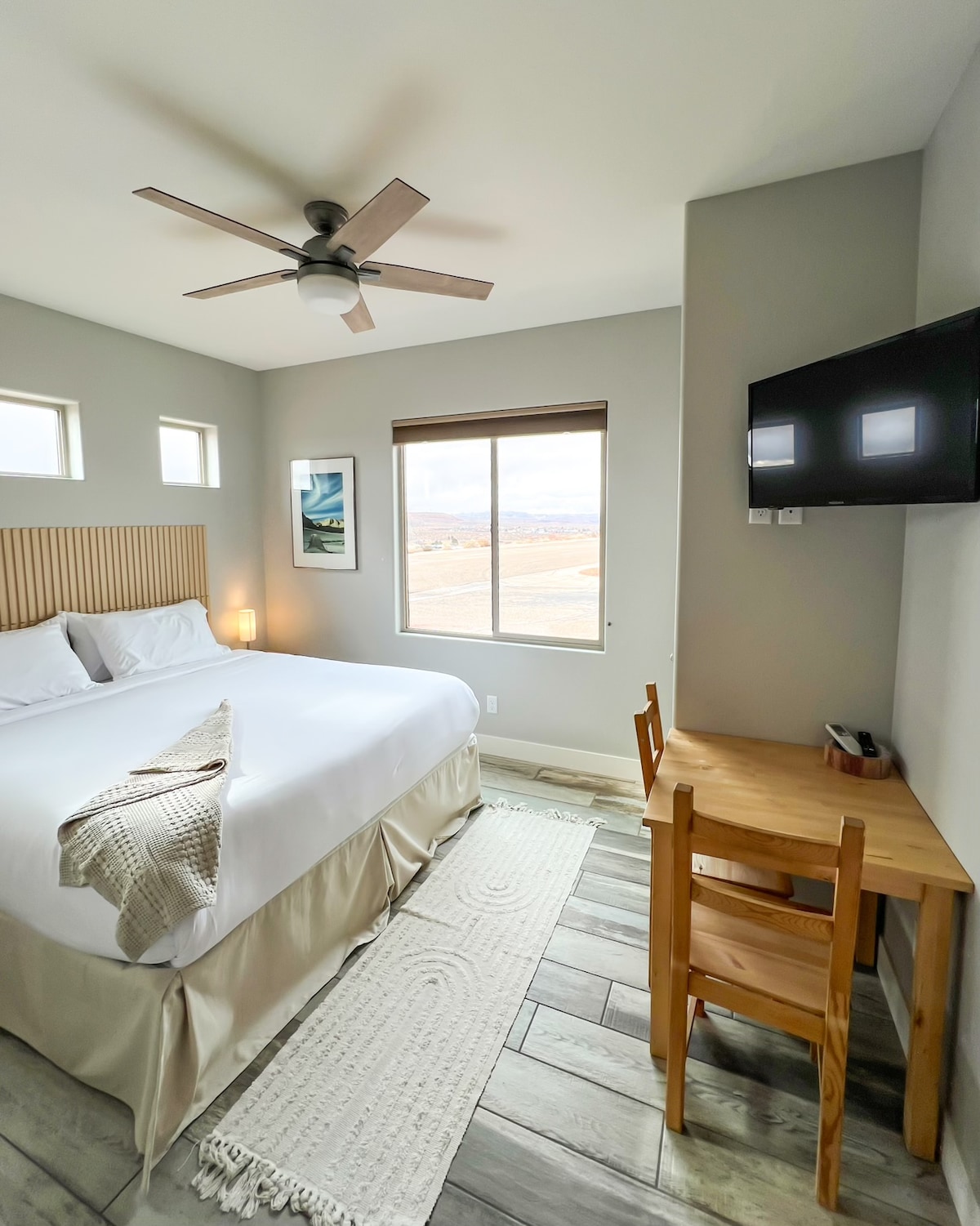Nytt och modernt privat 1 sovrum studiolägenhet utrymme. En superbekväm dubbelsäng. Lyxigt badrum med stor dusch. Kärleksstol och pentry kompletterar utrymmet. Det finns ingen spis eller kokplatta i pentryt, men det är utrustat med ett kylskåp i full storlek, diskmaskin och mikrovågsugn. Allt du behöver för din korta vistelse och besöka vackra Page, AZ! OBS: FRÅN OCH MED DECEMBER 2023 ÄR KABEL-TV INTE LÄNGRE TILLGÄNGLIGT I PAGE. TV:ARNA HAR APPAR SOM ANVÄNDER DIN EGEN INLOGGNING