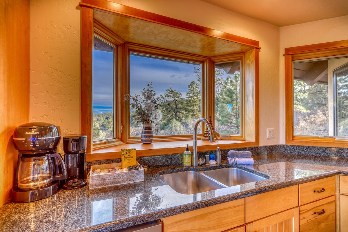 Välkommen till Glass Valley, ett nytt (juni 021) boende designat och byggt för att maximera den magnifika utsikten över dalen nedan och bergen bortom. De flesta som besöker Pagosa Springs vill tillbringa sin tid utomhus vilket du kan göra här, även när du kommer hem. Det delvis täckta 40 meter långa däcket på övervåningen och 17 meter täckt däck på nedervåningen vetter mot väster så att du får njuta av frukost eller ditt morgonkaffe al fresco och när du kommer hem kan du njuta av de magnifika solnedgångarna.