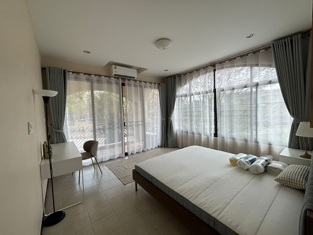 This is a new townhome in a great location. The best bakery is next door, along with the best playground in Thailand across the street. The area is very diverse with people from around the world. There are coffee shops, work cafe's and many friends you have yet to make. Kids can skateboard and play in the street with little traffic. This is a peaceful area with lots of food options across the street.