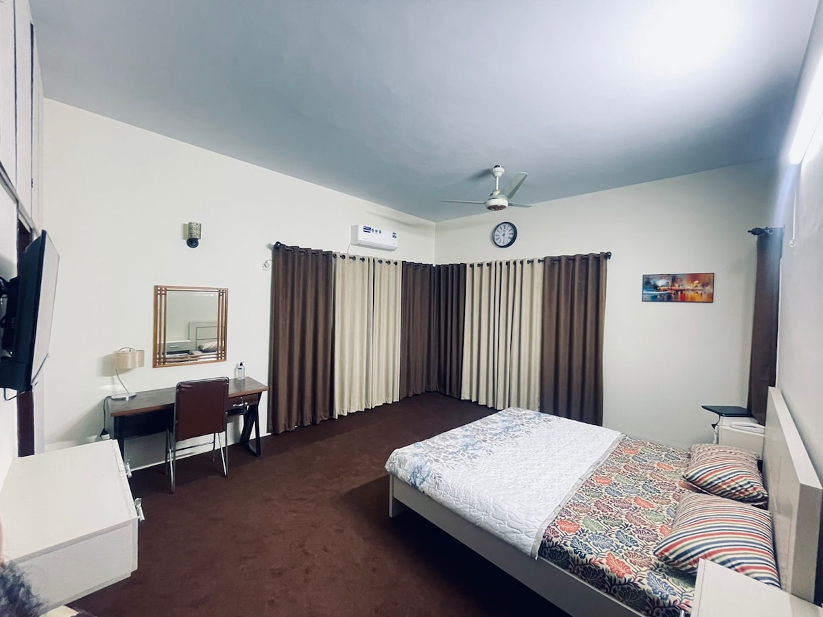Nybyggd 3-rumslägenhet på bottenvåningen i E-11/4, Islamabad. Varje rum har balkong och fönster, 3 badrum, öppet kök, rymlig lounge med matplats. Separat ingång, Margalla utsikt, vattendispenser, tvättstuga, strykjärn stativ, inverter, AC, Wi-Fi. Bara 1 min promenad till butiker och restauranger. Endast familjer.