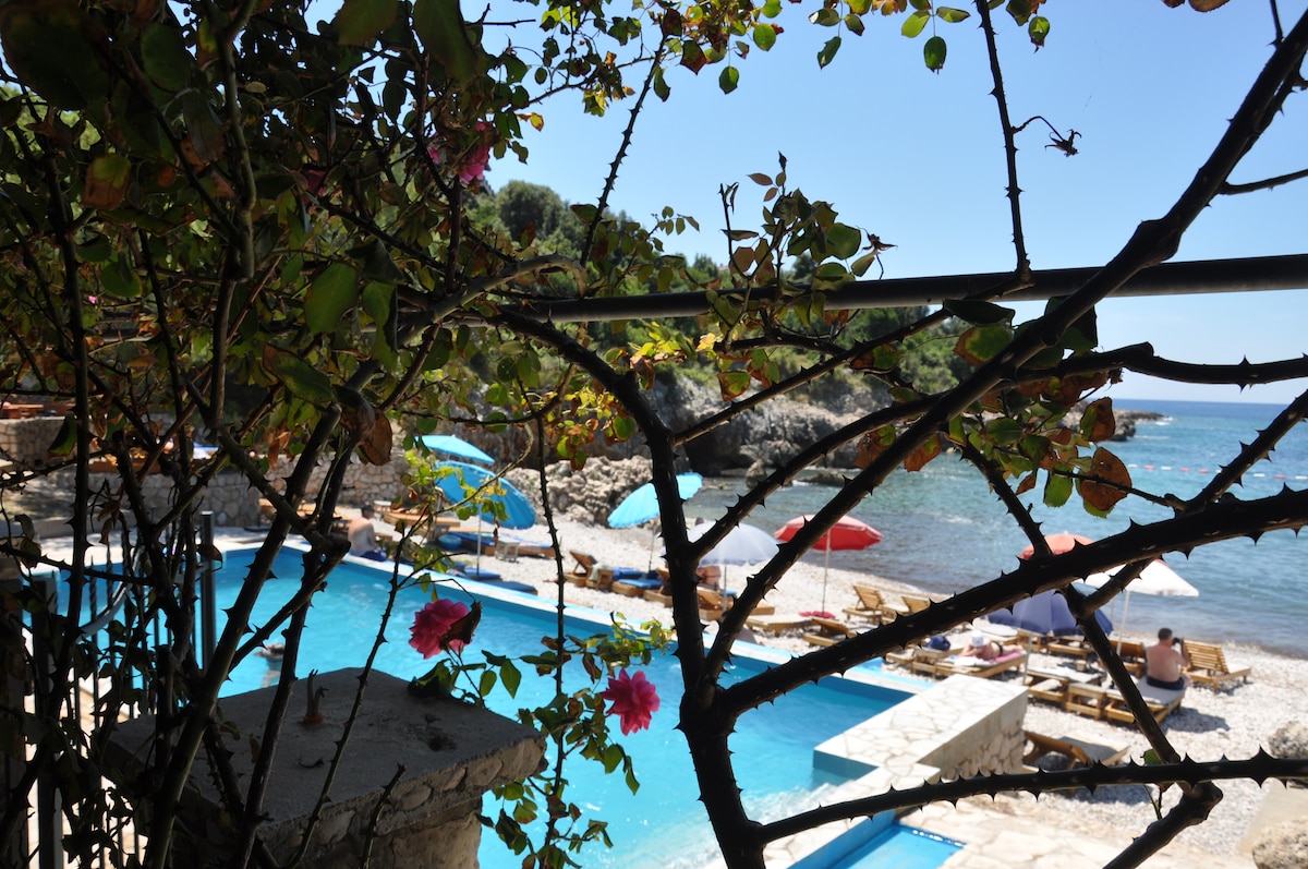 Seaside Holm Oak Villa med privat stenstrand