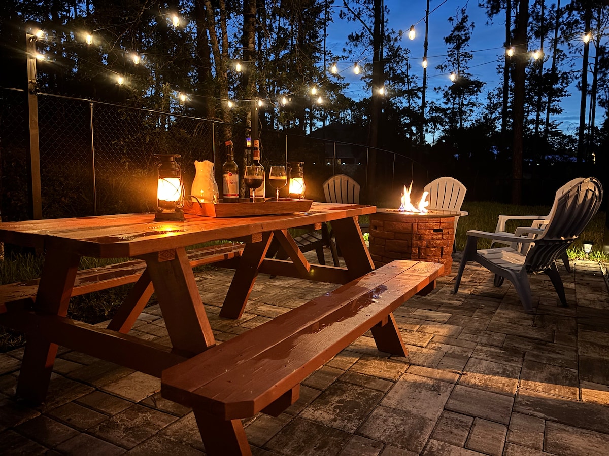 Take it easy at this unique and tranquil getaway. Whether you're here for a short stay or here to explore.... There's something for the princess at heart and for the adventurer. There's a comfortable hybrid mattress for two plus an extra memory foam mattress for two and a tent with a crib size memory foam pillow. Kitchenette is nicely equipped. A fireplace for ambiance under the TV. The bathroom has all the necessities with a walk-in shower. Relax on the patio under the sun and stars.