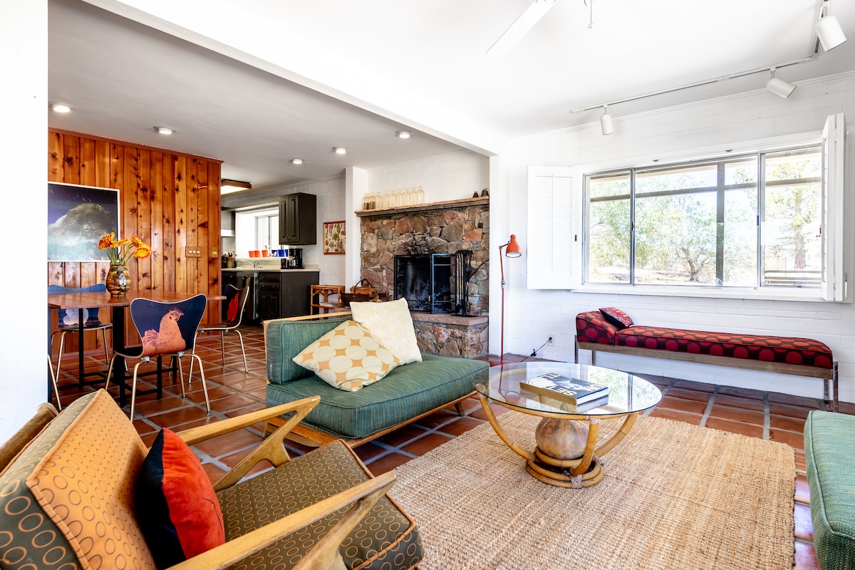 Mockingbird Cabin är en naturälskares fristad inbäddad mot en sluttning på 2,5 privata tunnland. Denna helrenoverade, ljusfyllda pärla från mitten av århundradet har höga valvade tak, ett filtrerat vattensystem, kockkök, fällbara glasdörrar som öppnas till en fågelskådning + yoga uteplats och en bubbelpool för stjärnskådning. Beläget bara ett stenkast från Big Morongo Canyon Preserve, erbjuder denna drömlika gömställe en plats på första raden till över 200 arter av flyttfåglar plus kaniner, ekorrar och fjärilar.
