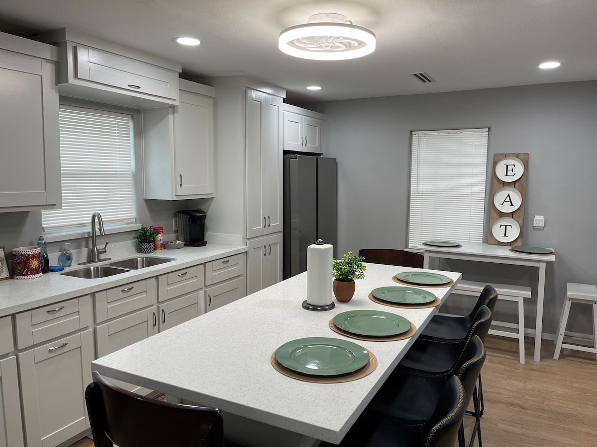 Nytt Airbnb-boende och nyrenoverat boende med 3 sängar, 2 badrum i norra, centrala McAllen. Beläget 5 till 10 minuter till DHR, HEB, många internationella restauranger, McAllen flygplats och La Plaza Mall. Gå ut genom din ytterdörr och ta kvällspromenader genom ett av McAllens största grönområden. Gå ett halvt kvarter till frukost eller kaffe. Laga speciella minnen i det moderna köket eller helt enkelt njuta av lugnet i trädgården.