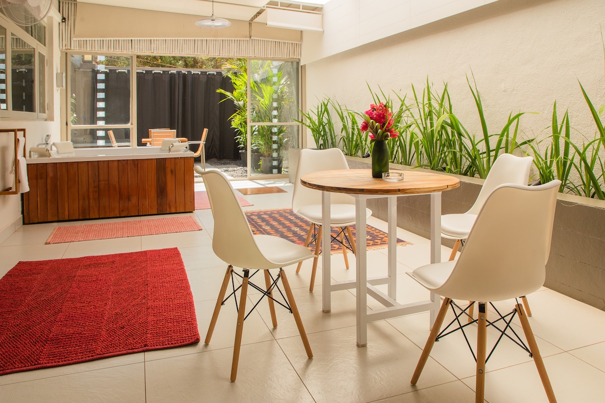 Upplev raffinerad komfort i hjärtat av Fontainhas, Panjims mest livliga och historiska kvarter. Denna eleganta neo – Art Deco lägenhet blandar boho chic med premium design, erbjuder en lyxig och intim vistelse för upp till fyra gäster. Varje detalj utstrålar elegans och lätthet. Kliv ut till Goas kulinariska hjärta – bredvid en av Indiens 100 bästa restauranger, och ett stenkast från sju fler hyllade matpärlor.
