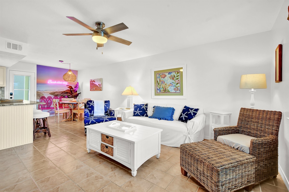 Denna lägenhet vid havet är den perfekta tillflyktsorten – bara några steg från sanden på en av världens vackraste stränder. Bekvämt nära poolen, har en king size-säng och ett våningssäng, perfekt för par eller familjer. Koppla av i vardagsrummet med en 55-tums TV, kabel, Netflix, Disney+ och gratis Wi-Fi. Från 15 mars till 31 oktober kan du njuta av gratis strandstolar och ett paraply – ett värde på 45 USD/dag – vilket gör dina stranddagar ännu mer avkopplande och problemfria. Lägenhet på 1:a våningen.