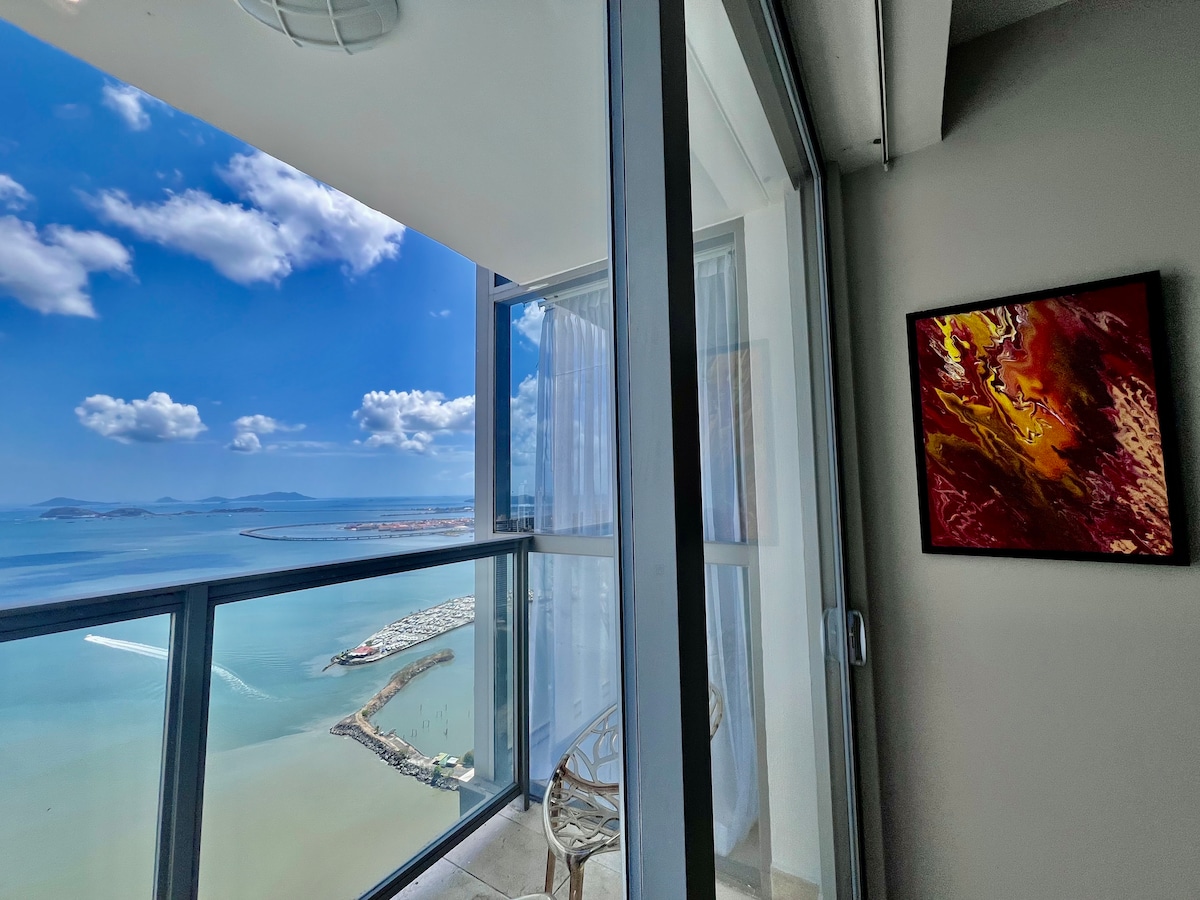 Vacker lägenhet på 54:e våningen i Panamas lyxigaste byggnad. Områden designade av designern Philip Stark. Den är 134 meter, fullt möblerad, har ett sovrum, klädkammare, ett komplett badrum, öppet vardagsrum och kök, socialtvätt, terrass, tvättstuga. Byggnaden är en unik plats, med speciella och lyxiga gemensamma områden; 2 eleganta restauranger; 2 pooler; gym; spa; 2 squashbanor; pokerrum, lobby med biljardbord, etc.
