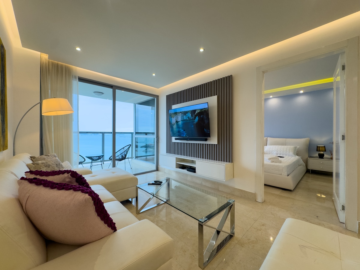 Elegant studiosvit med fantastisk havsutsikt, belägen på Panama City ikoniska Cinta Costera. Perfekt för affärsresenärer, par eller turister som söker stil, komfort och bekvämlighet. Har ett fullt utrustat kök, rymligt badrum, snabbt Wi-Fi och tvättmaskin/torktumlare. Njut av de bästa bekvämligheterna: pool, gym, sky lounge, spelrum, restauranger och säkerhet dygnet runt. Värdskapet sköts med omsorg av César & Claudia för att säkerställa en varm och minnesvärd vistelse i Panama. Kom ihåg att kontrollera vår guide. Med parkering ingår!