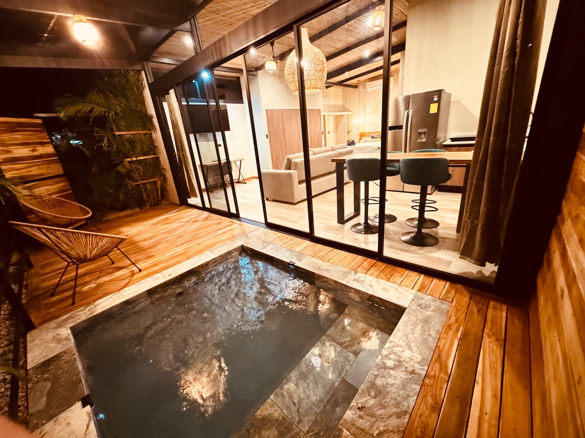 Välkommen till vår romantiska svit som ligger nära till hav och natur. Mindre än 5 minuters bilresa från Penca strand och 10 min från Potrero och Flamingo, kom och koppla av i detta mysiga bo, perfekt för romantiska nätter. Sviten har eget pentry, badrum och egen terrass med fantastisk utsikt över havet och bergen. Du kommer att koppla av i sin privata pool (2 m x 1,3 m). Idealiskt beläget, du har närhet till alla bekvämligheter och många aktiviteter. Liberias flygplats ligger cirka 40 kilometer bort.