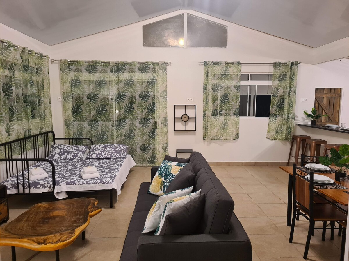 Njut av din vistelse i denna mysiga bungalow, som ligger 2 minuter med bil från Taharuu surfstrand, 5 minuter från Atimaono golfbana och 2 minuter från livsmedelsbutiker. Ett perfekt ställe att koppla av efter en sportträning eller helt enkelt för att komma bort från liv och rörelse i Papeete. Du kommer att ha allt för att du ska känna dig som hemma: en egen ingång med ett täckt garage, gratis WiFi, Netflix, en tvättmaskin och ett fullt utrustat pentry och bordsartiklar. Incheckningen börjar 15: 00. Utcheckningen är vid middagstid.
