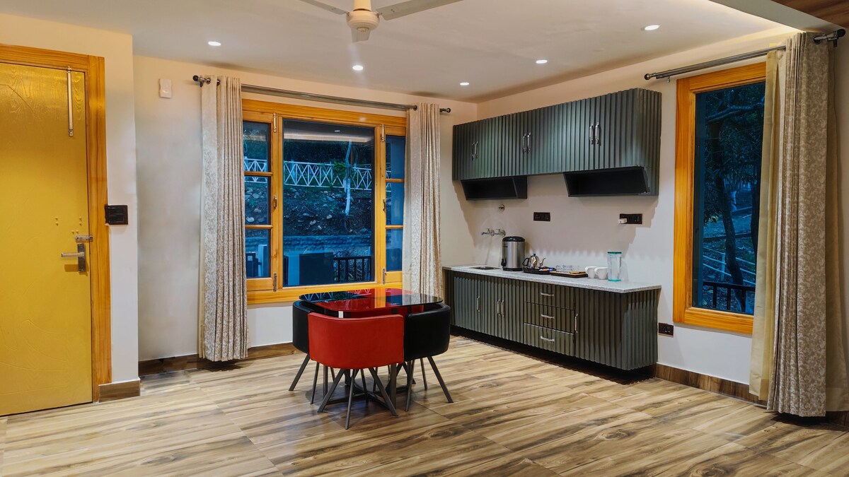 En vackert utformad loftvistelse, perfekt för en liten familj eller ett par som söker komfort och lugn. Gäster har tillgång till färska grönsaker i huset för personligt bruk, vilket ger en hälsosam, hemtrevlig touch till vistelsen. Detta är ett djurvänligt boende, så dina lurviga följeslagare är välkomna att stanna vid din sida 🐾 Rekommenderas starkt för dem som inte har något emot att hålla sig borta från det kommersiella surret i McLeod Ganj och Dharamshala och föredrar en lugn upplevelse i bystil omgiven av naturen.