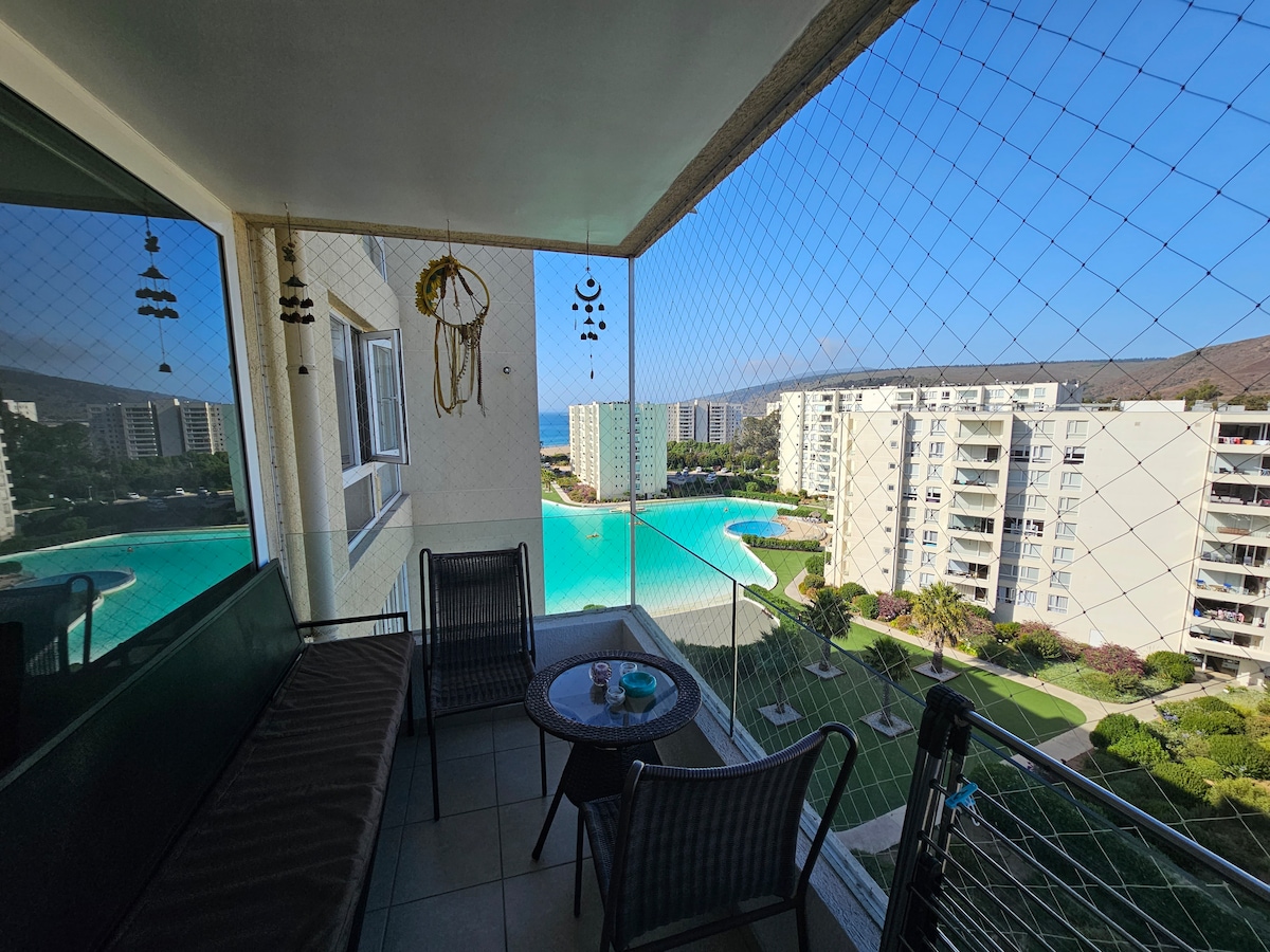 Mysig ny lägenhet i Papudo med utsikt över våtmarken och några steg från havet. Den har en lagun, pooler och faciliteter för att tillbringa några dagar av avkoppling med familj eller vänner och utöva kajakpaddling, ståpaddling, fotboll, tennis, beachvolley, mountainbike, surfing eller bodyboard. Några minuter från Plaza de Armas finns restauranger, konditorier, minimarknader och apotek som erbjuder utmärkt service. Även jordbruksmässan och fiskarnas hamn är alternativ. PAPUDO, charmig by och vacker resort