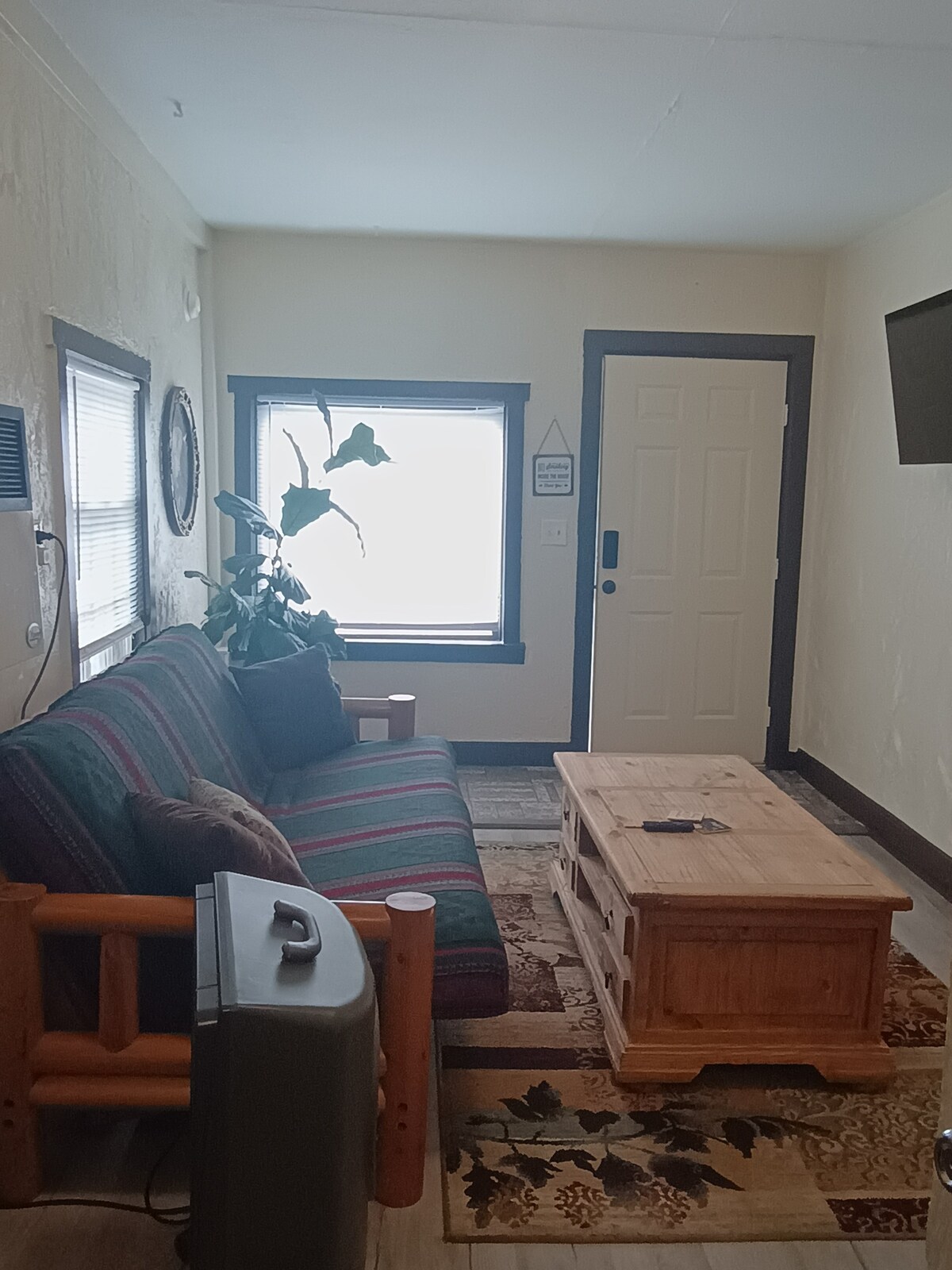 Kom och upplev ett mysigt, moderniserat historiskt hem beläget i det växande och smutsiga blandade industriella/kommersiella/bostadsområden nära centrala Grand Junction, bara några kvarter från floden och Las Colonias Park. Detta bekväma läge innebär att du kommer att höra TÅGET. Men 99 %+ av våra gäster nämner det inte ens (se våra omdömen)! Inga husdjur tillåtna. Huset ligger på samma tomt som vårt styrka- och konditioneringsgym.