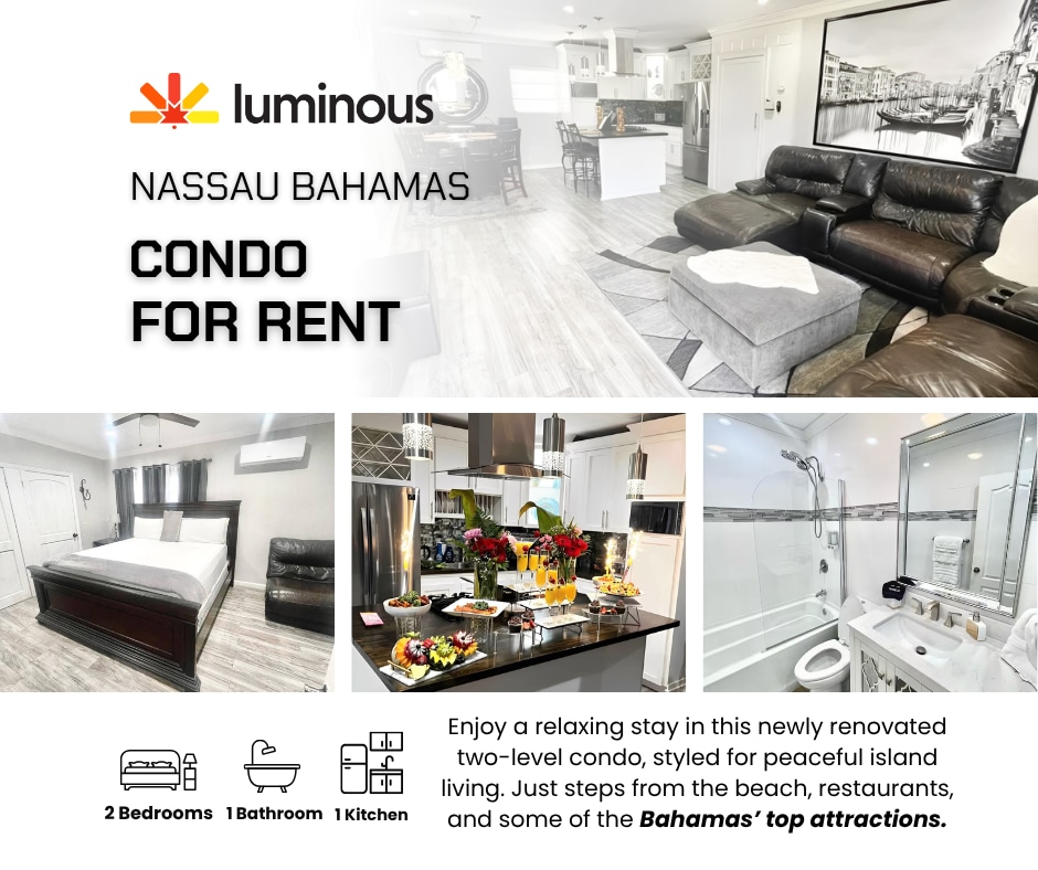 UPPDATERING: NFL-fans kan se varje match varje söndag med Red Zone och Sunday Ticket. Njut av centralt belägen, elegant 1 sovrums lägenhet, inom gångavstånd till Atlantis Resort, Paradise Island Beach, köpcentrum och mer Enheten har 1 sovrum, 1,5 badrum och en luftmadrass i queen-storlek. Det har WiFi, 2 smart-TV med kabel-TV. Det ingår kaffe, te och dricksvatten. Köket är fullt utrustat. Vi har också en minisäng för spädbarn. Simbassängen finns på plats.