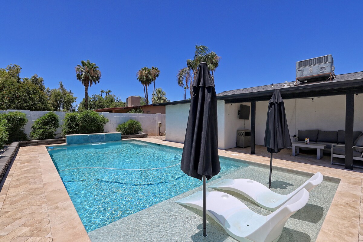 Koppla av med stil i detta lyxiga Airbnb-boende i Scottsdale med privat pool, bara några minuter från gamla stan. Denna moderna tillflyktsort är perfekt för familjer och erbjuder exklusiva bekvämligheter, rymliga bostadsutrymmen och fridfulla uteplatser. Njut av närliggande topprankade restauranger, shopping, golf och nattliv. Centralt beläget, familjevänligt och utformat för komfort – din perfekta ökenresa med poolside-vibbar väntar.