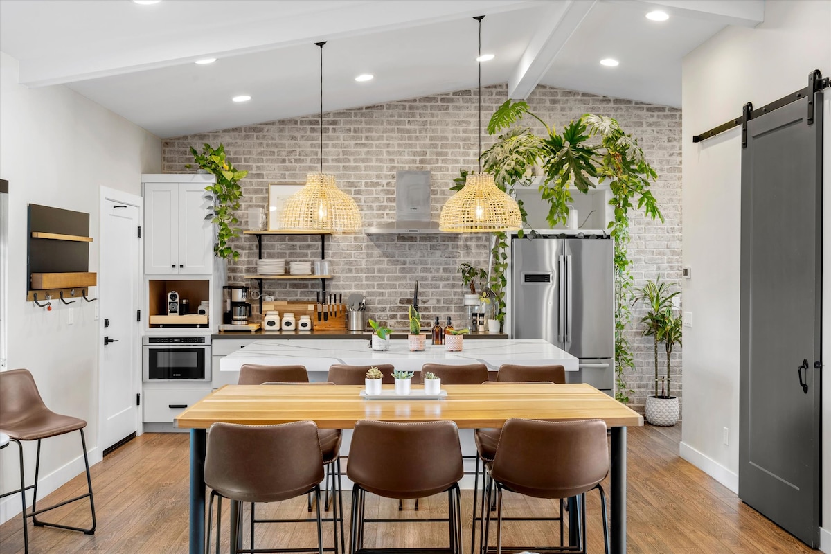 Välkommen till "Villa Omnia", ditt perfekta resmål med ett utomhuskök, uppvärmd pool, bocce bollplan, putting green och olika uteplatser! Kockens kök öppnar till ett rymligt stort rum med två sittplatser och en öbar. Det finns två sovrum med eget badrum och två extra sovrum med flera bäddar. Ett kontorsutrymme med en utdragbar bäddsoffa rymmer extra gäster. Var värd för evenemang som masterminds, retreats och pre-wedding-grupper, allt bara 12 minuter från Gamla stan!