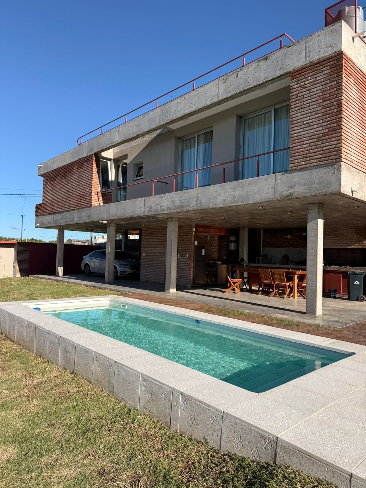 ☀️Hermosa Casa sobre el Rio Paraná, colgada de sus Barrancas. 📍Ubicada en Bajada Grande, a 5 minutos del centro. 💡Ideal para parejas, familias, grupos hasta 5 Cuenta con: 🛌🏻 2 Cuartos 🫂 5 Personas 🏡 Patio amplio con Piscina y Parrilla. 🎣 Muelle Deck gran punto de pesca sobre la orilla del Río 🪟 Grandes ventanales por los que se vive y se aprecia el río desde cada rincón de la casa. ❄️ Refrigeración y Calefacción en todos los ambientes 🚘 cochera