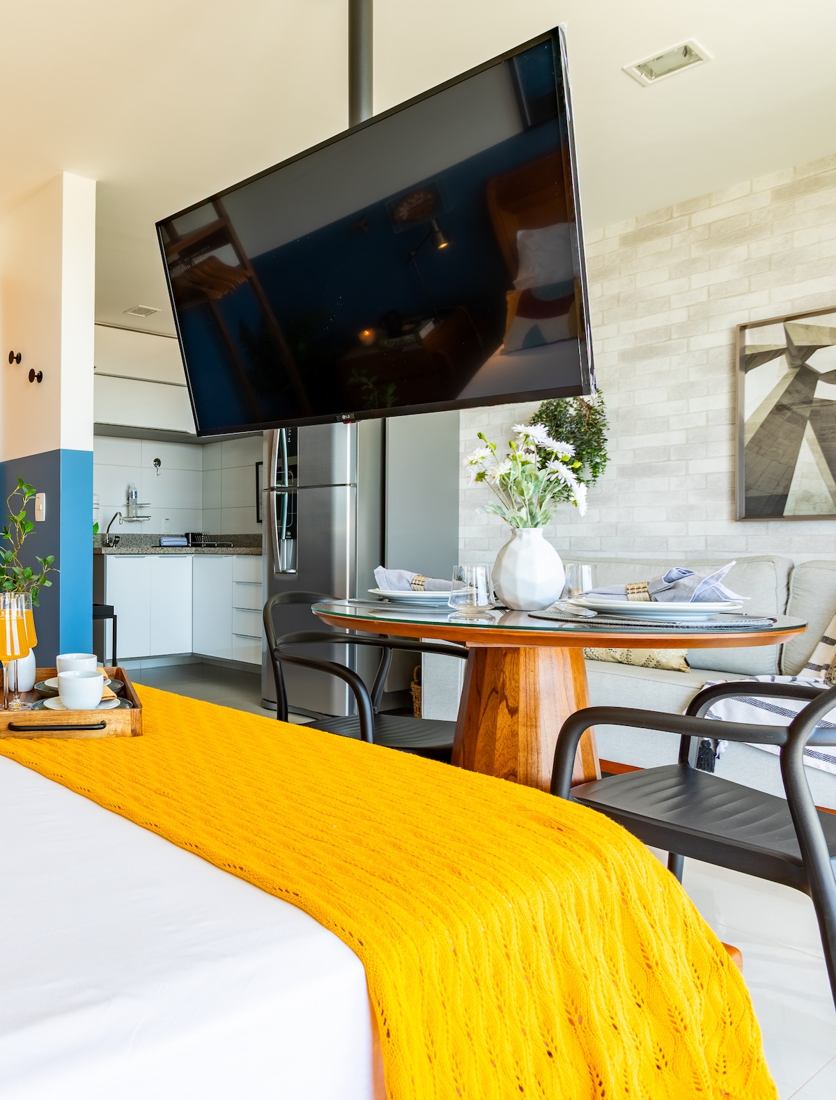 Lägenhet i takvåningen i byggnaden Fusion Work Live, med ett utmärkt läge, i Setor Hoteleiro Norte, mycket nära Conjunto Nacional. Lägenheten är annorlunda, med 1 dubbelsäng och 1 bäddsoffa, sängkläder och handdukar, TV, wi-fi, luftkonditionering, matbord, arbetsbord, skåp, litet kök, kylskåp, vattenkokare, smörgåsgrill, luftfritös, induktionsspis, kastruller, tallrikar och bestick. Luftkonditioneringen är placerad i korridoren, i rummet har vi lagt till en luftkonditionering.