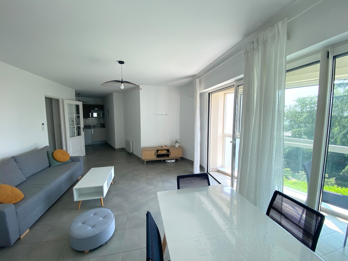Koppla av i detta lugna och eleganta boende. nära spårvagnshållplatsen Beausejour, så att du kan ta dig till alla hörn av Nantes utan problem med kollektivtrafik eller bil. Det är ett boende på 40 m2 med 1 sovrum och 1 badrum Du har tillgång till följande i boendet: lakan, handdukar, toalettpapper, duschgel, salt, peppar, kaffe och te. Bekväma sängkläder i sovrummet med en madrass på 160 x 200 En bäddsoffa med en RIKTIG madrass 140x190 och 20 cm tjock.