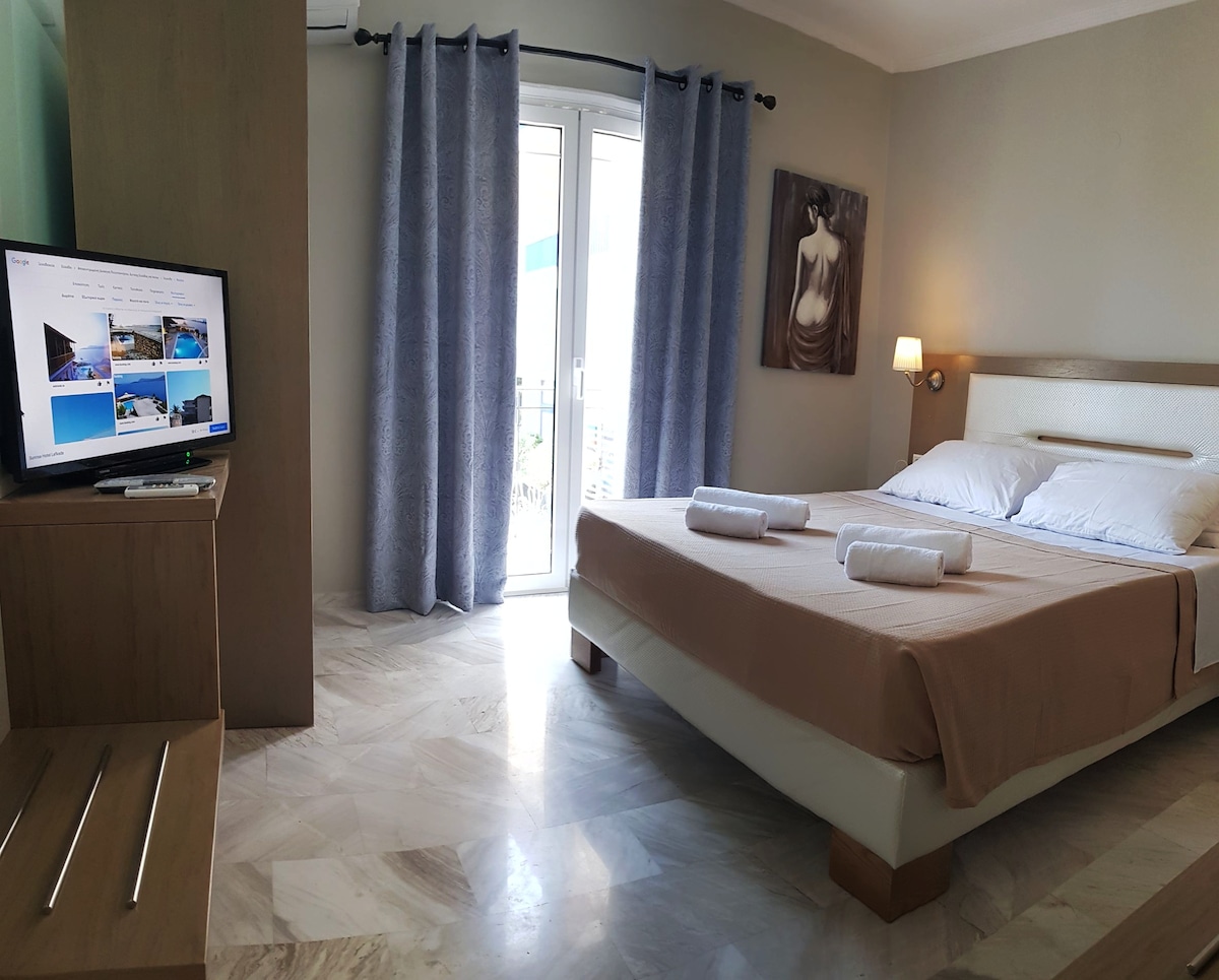A studio apartment with a view of the Ionian Sea, just 2 km from the historic centre of Preveza. The apartment features a large double bed, a sofa bed (sleeping area 130*190 cm), and a fully equipped kitchen. The seaside area of Pantokratoras is one of the most beautiful neighborhoods in Preveza, with a lovely beach right below the apartment, as well as several others within less than 1 km. It can also be combined with the Ionian Blue Apartment.