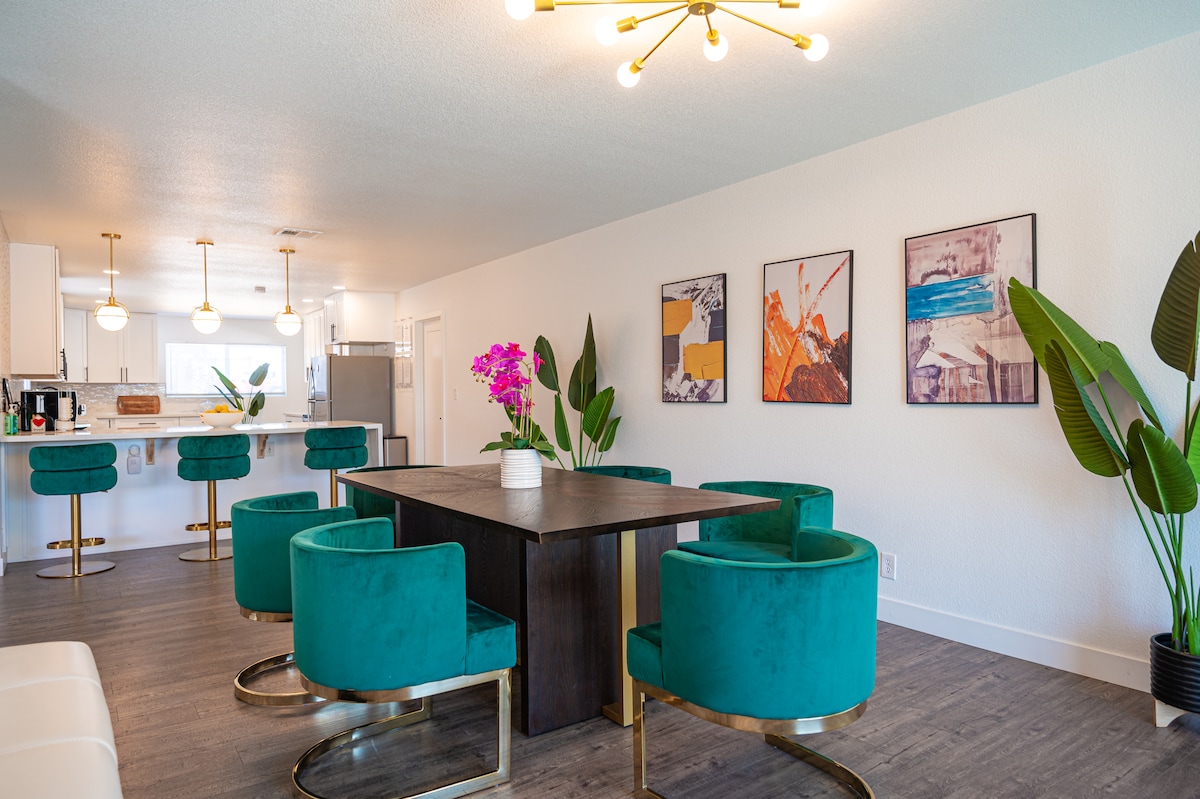 SÄLLSYNT på marknaden! Detta helt fantastiska, helt ombyggda licensierade Artsy hem med en POOL, AFFÄRS CENTER, KOCKKÖK ligger i hjärtat av historiska DOWNTOWN-bara 5 minuters bilresa till Las Vegas Strip, 10 min till Convention Center och 3 min till Fremont Experience. Denna utsökta tillflyktsort ligger i ett lugnt grannskap och är idealisk för gäster som söker lyx, komfort och skoj på ett och samma ställe. Detta boende är genomtänkt utformat och vackert utrustat och uppfyller alla dina familje-, affärs- och fritidsbehov.