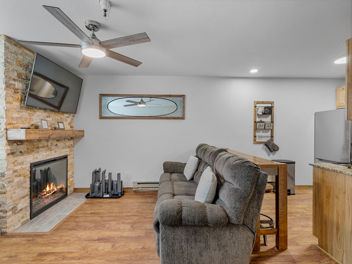 Modernt, mysigt, bekvämt och smidigt! Utsikt över backarna direkt från vardagsrummet. En snabb, enkel PROMENAD TILL BERGET för skidåkning, mountainbike och vandring. Efter en dag ute, kliv ut ytterdörren för att koppla av i BUBBELPOOLEN + POOLEN! (öppen sommar + vinter) GÅNGAVSTÅND till butiker och restauranger på historiska MAIN ST. GRATIS PARKERING för gäster (en bil) framför lägenheten. En bäddsoffa med dubbelsäng (160 cm) i sovrummet plus en bekväm utdragbar soffa i vardagsrummet för ytterligare gäster.