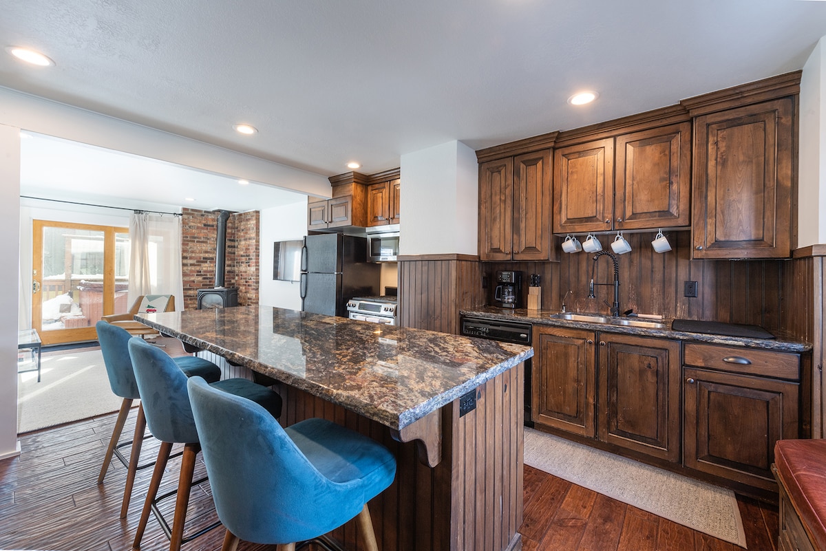 Koppla av i denna vackert designade lägenhet i två våningar vid foten av Canyons. Detta familjevänliga boende har utformats med omsorg och blandar modern chic med en mysig rustik bergskänsla, inklusive välvda tak med exponerade träbjälkar och en eldstad i sten. Beläget en kort promenad till Cabriolet-liften finns det ingen bättre utgångspunkt för dina bergsäventyr. Återvänd hem för en bekväm kväll vid elden och din egen privata uteplats för grillning och utsikt.