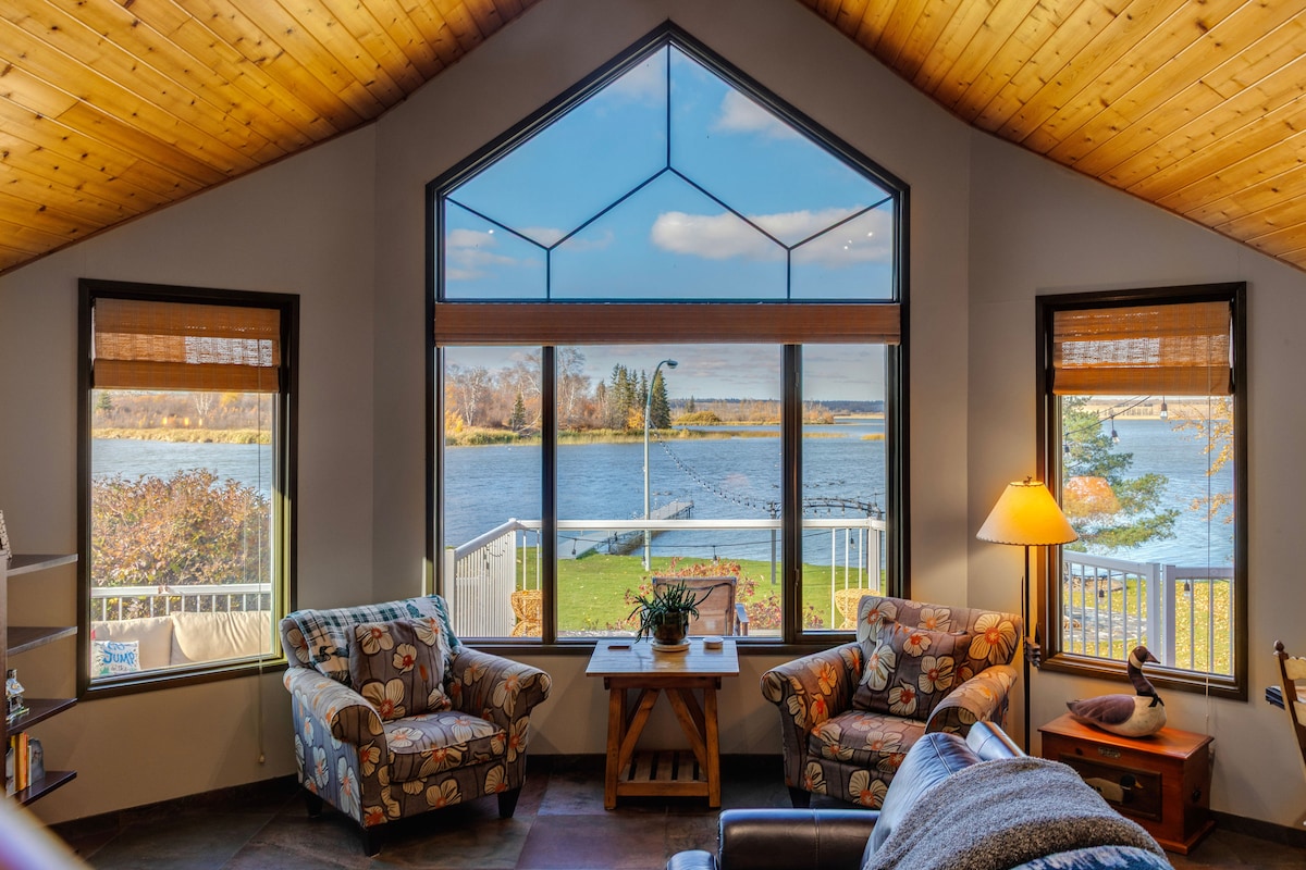 Fly till en lugn tillflyktsort vid sjön bara 50 minuter väster om Edmonton. Vakna upp till sjöutsikt direkt från din säng! Koppla av i badtunnan vid vattnet, ät ute på uteplatsen eller det helt nya däcket. Njut av en rolig filmkväll komplett med popcornmaskin i teaterstil och 75" Smart TV. Återförenas med nära och kära på detta familjevänliga ställe. Öppna vardagsrum ansluter till kök och matsal så att alla kan känna sig inkluderade - och njuta av utsikten från nästan varje plats i hemmet!