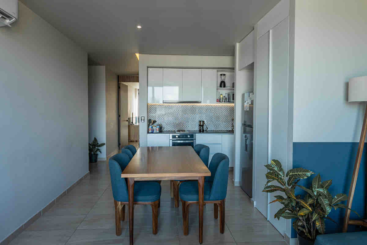 Modern och bekväm lägenhet 8 minuter från stranden, ADO bussterminal och färjan till Cozumel. Perfekt för upp till 4 personer som söker semester, helg eller långa vistelser/home office (100 MB internet i lägenheten). Byggnaden har privat säkerhet dygnet runt, takträdgård med pool, gym och en central trädgård som tar andan ur dig. Beläget mittemot Parque la Ceiba, 2 kvarter från super Chedraui, banker, apotek och huvudvägar.