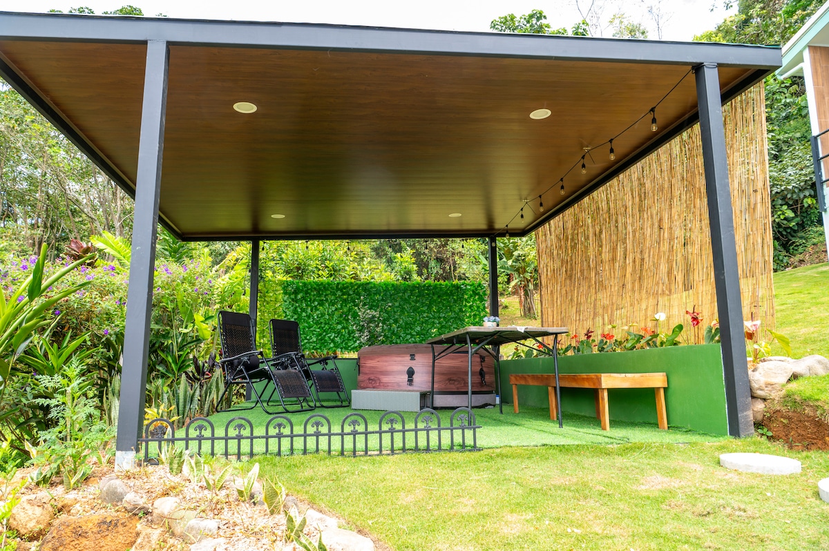 Skapa oförglömliga minnen i denna vackra stuga, omgiven av natur i en fridfull och helt privat miljö, låt dig slappna av av ljudet av floden. Perfekt för att planera din resa till Chirripó nationalpark eller njuta av några dagars vila i den vackra San Gerardo-området och dess attraktioner. Du kan besöka fjärilsparken, de varma källorna, vattenfallen eller forsfisket, allt bara några minuter från stugan.