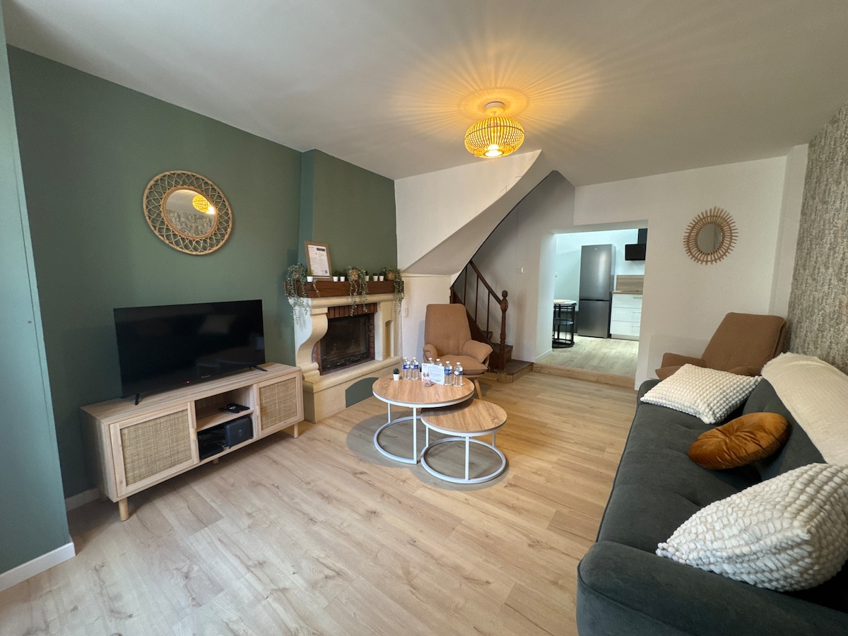€ 60/natt - 360,00 €/vecka - bokning för minst 2 nätter- 20 euro för städning. Ett litet radhus i Parthenay nära Porte Saint Jacques, och centrum , 1 timme från Poitevin-myran, minuter från Puy du Fou, isig timme från Futuroscope. 2 sovrum, badrum och toalett på övervåningen 1 köksworkshop - 1 vardagsrum vardagsrum Ugn+ mikrovågsugn, tvättmaskin och torktumlare Diskmaskin – Internet/fiber-TV Lakan och handdukar tillhandahålls