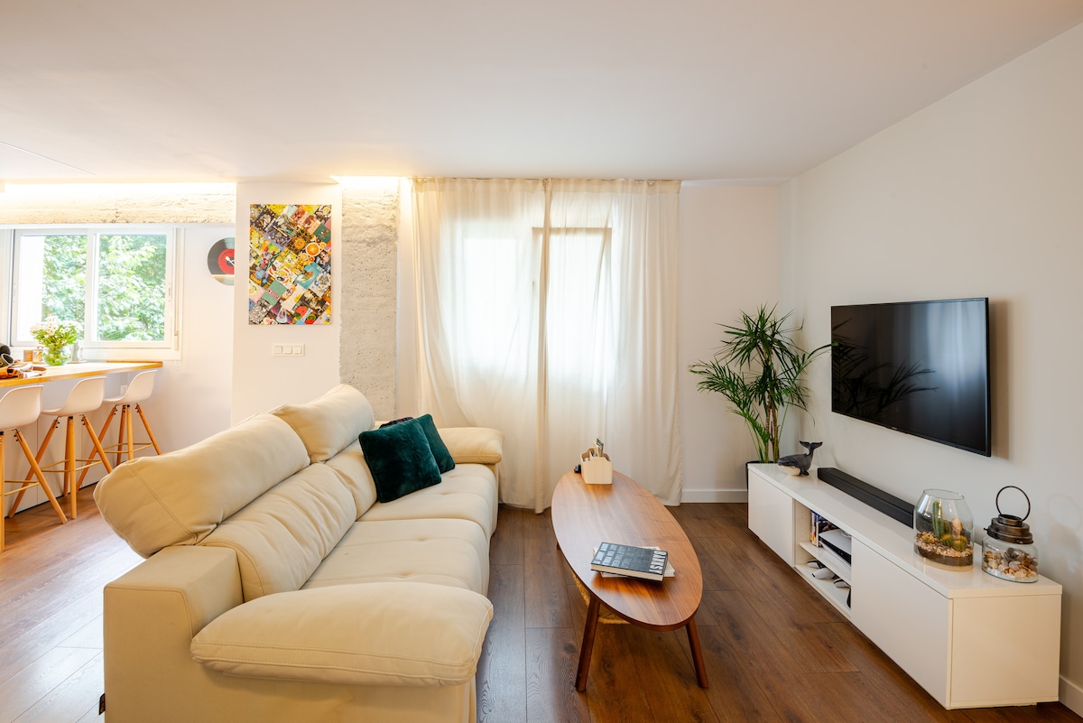 Denna nya lägenhet med ett sovrum, kingsize-säng och bäddsoffa (144x180 cm) har en urban och mysig stil och ligger i hjärtat av stadsdelen Gros, 1 minut till fots från stadens centrum Oklanderligt nyrenoverad med luftkonditionering, 55" TV, WiFi, Nespresso. Fullt utrustad för barn och spädbarn. Perfekt beläget 2 minuter från busstationen och tågstationen, samt bredvid en direktbusshållplats till San Sebastiáns flygplats.