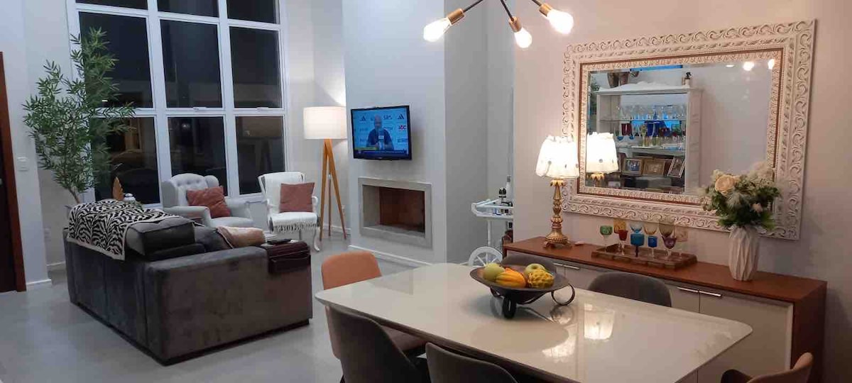 Ta med hela familjen till detta fantastiska ställe med gott om utrymme att ha kul. Huset är av hög standard, rymligt och ligger i en bostadsrätt med tillgång till Mampituba-floden, där vattensporter kan utövas. Lägenheten har ett nyöppnat gym, lekplats, marknad, pool och eldstad. Här hittar du den perfekta platsen för din familjesemester, med lugn och ro och snabb tillgång till stränderna. Två minuter från Passo de Torres strand och 5 minuter från Praia Grande i Torres.