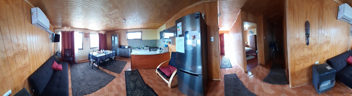 Oslagbart läge 2 minuter från bussterminalen och 10 minuter från det historiska och kommersiella området i Puerto Natales. Du får tillgång till en separat stuga med badrum bara för dig och 2 sovrum, med en dubbelsäng och en med våningssäng. Du kommer att ha varmt vatten för duschen, wifi och kabel-TV. Du kommer att ha gasvärme och alla köksredskap så att du kan laga mat. Ett annat utrymme som du kan se https://abnb.me/zkQ8MQGmiub Fråga efter tvätt- och torkningstjänsten.
