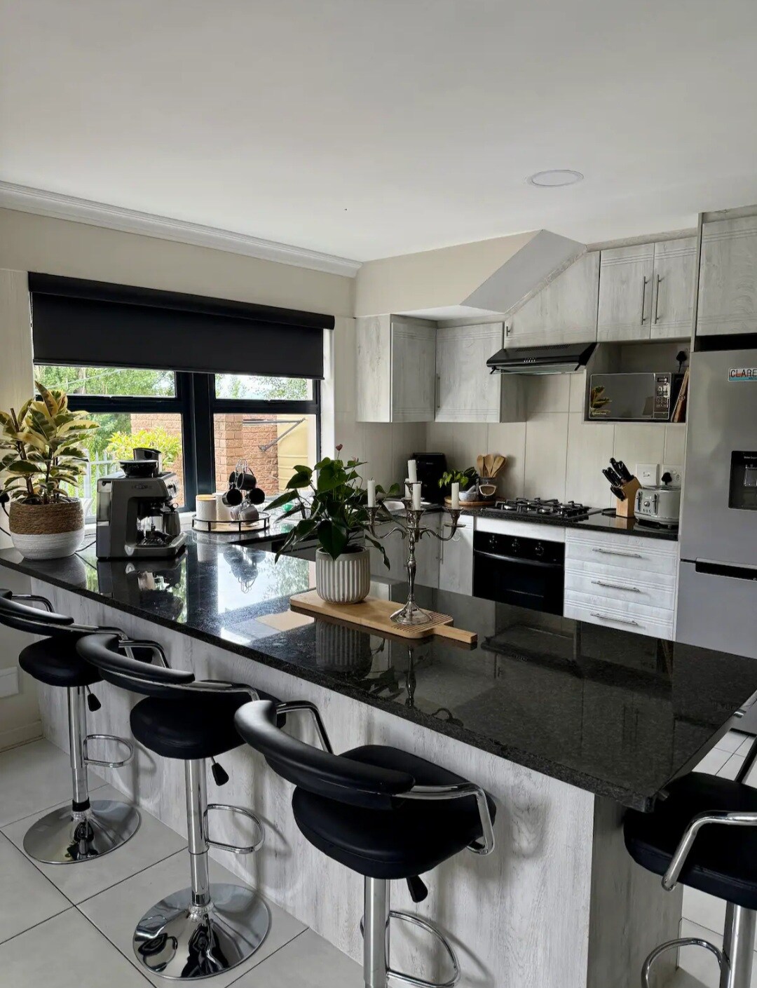 Detta unika boende har en helt egen stil. En sovrumssvit lägenhet ansluten till ett huvudhus med självhushåll. Vardagsrummet värms upp av en vedeldad eldstad och sovrummet har en luftkonditionering. Braai faciliteter på plats samt en Smart-TV med DSTV och WiFi. Två till tre km från centrum, på en bergssida. Det är den nedre nivån av ett trevåningshus men helt privat och påverkas inte av loadshedding.