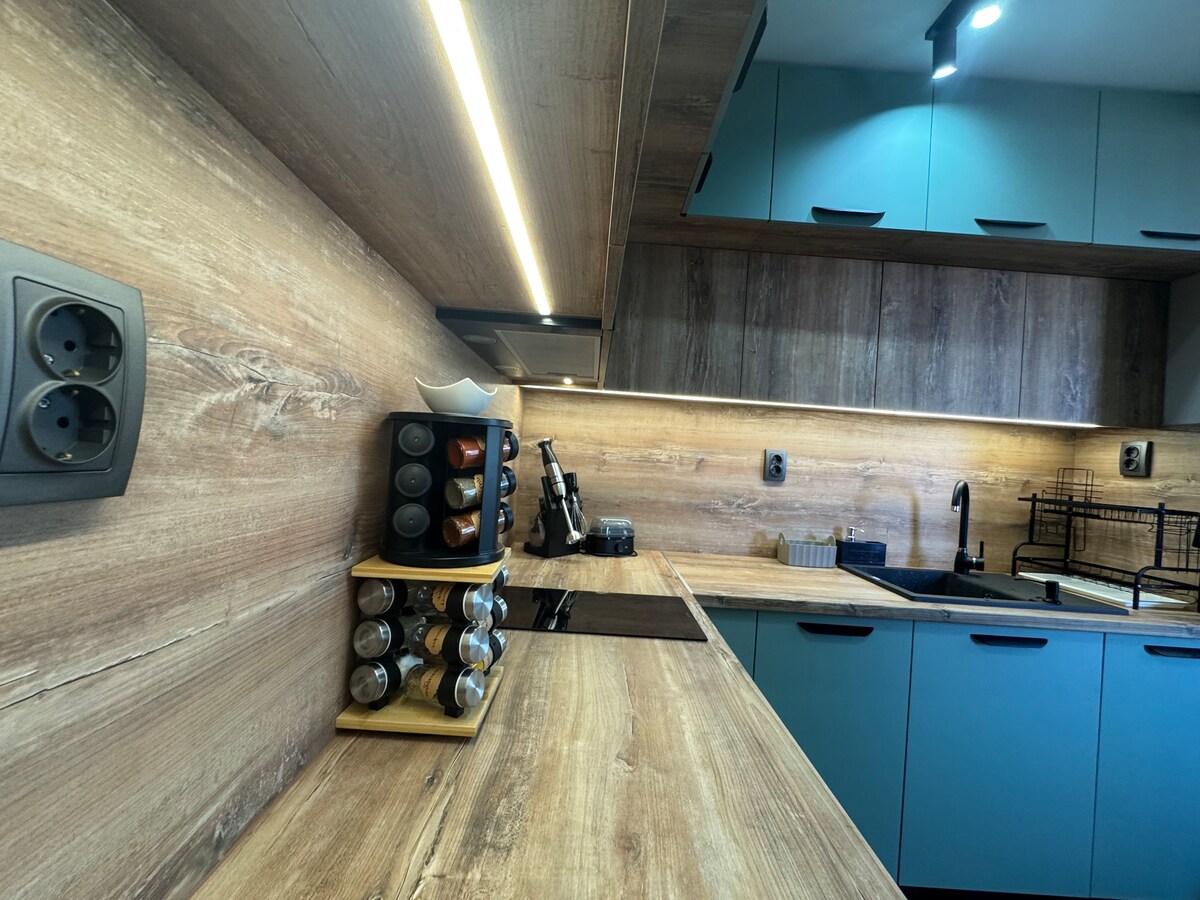 En mysig och elegant lägenhet i hjärtat av Stara Zagora, belägen på den centrala Tsar Simeon Veliki-boulevarden. Boendet har ett ljust vardagsrum med ett fullt utrustat kök, ett bekvämt sovrum och ett modernt badrum. Terrassen erbjuder utsikt över den livliga huvudgatan. Här finns restauranger, kaféer och kulturella sevärdheter i närheten. Lämpligt för både turister och affärsresenärer. Självincheckning och gratis parkering runt byggnaden.