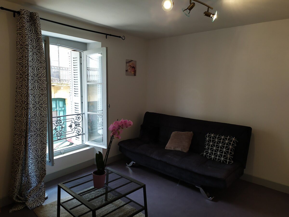 Liten ljus 20 M2 studio, belägen på 1: a våningen i en byggnad, i hjärtat av en vacker medeltida by. Det är nära till alla bekvämligheter ( restauranger, apotek, bageri, livsmedelsbutik etc...) Du kan besöka denna vackra by rik på historia! - ett litet sovrum med en säng på 120, TV. - en kitchinette , kylskåp, kaffebryggare, mikrovågsugn, - badrum med dusch, tvätt och toalett.