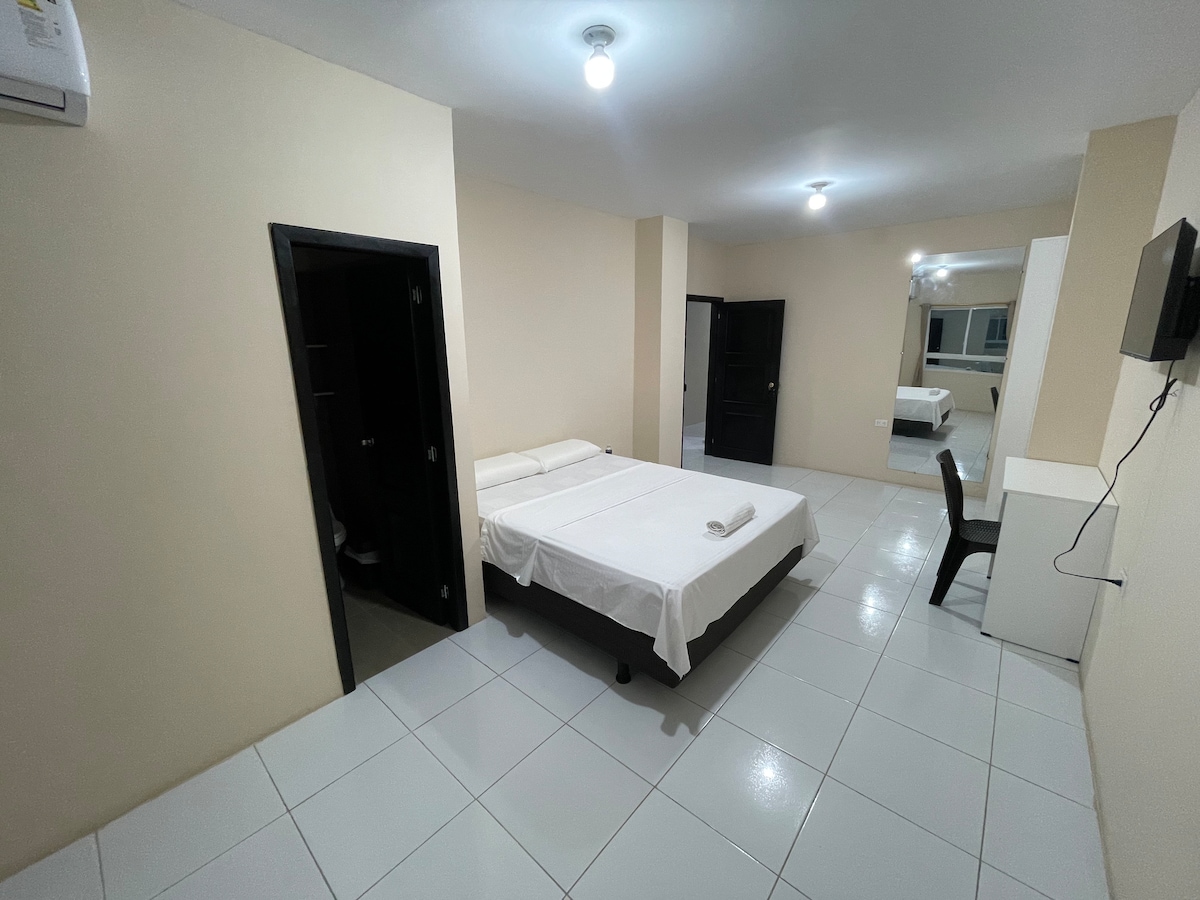 Rummen ligger inuti La Playa Lodge hotellet, ett komplex som vetter mot havet, beläget 1 km från staden Cojimíes och 20 minuter från Pedernales. Vi har direkt tillgång till stranden, sovrummen har luftkonditionering, TV-kabel, privat badrum med varmvattendusch. Vi har en pool, parkeringsplats och restaurang. WIFI är gratis och finns i restaurangområdet, vi har inte WIFI i rummen. Incheckningstid kl. 14.00 och utcheckningstid 12:00