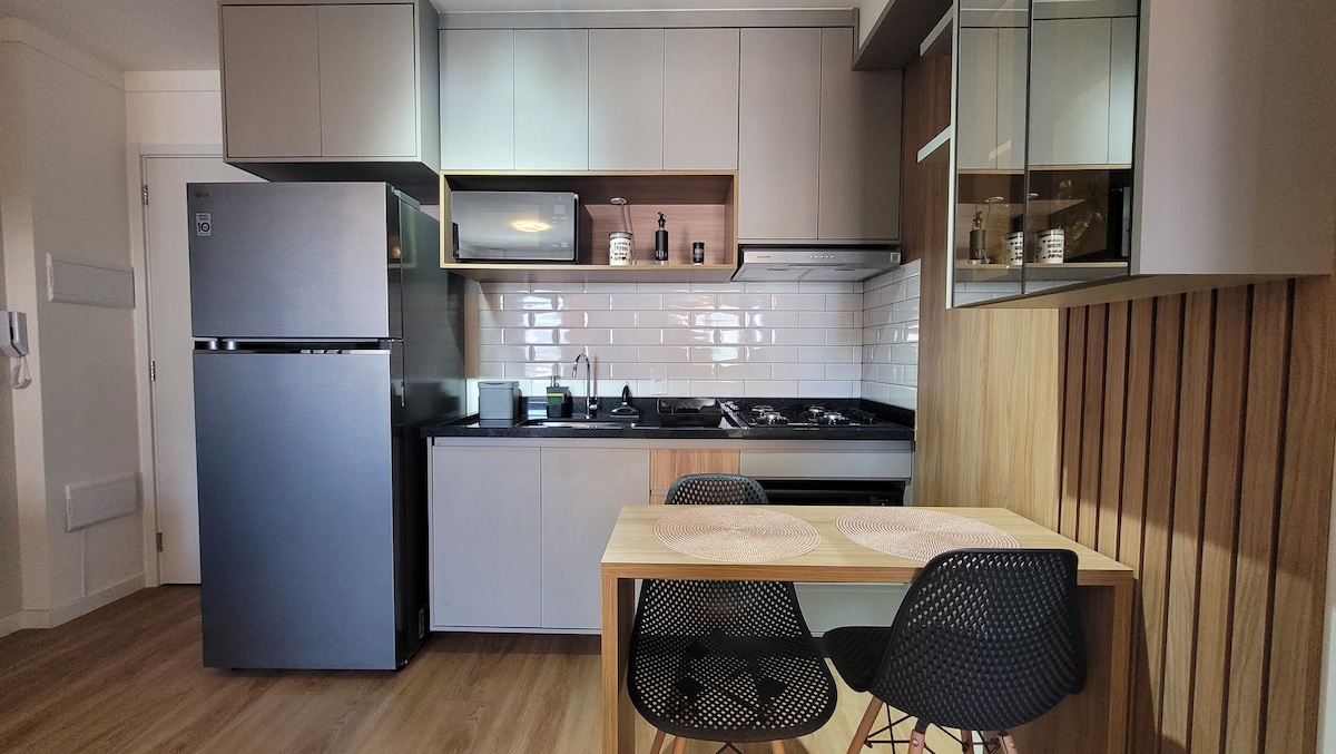 Apê möblerad i köket och badrummet med skåp! Huvudsovrummet med luftkonditionering i fönstret och det andra sovrummet är hela garderoben, om du behöver den kan du använda den. Hushållsredskap är fullt tillgängliga, inklusive original Airfryer Philips Walita. Den har 8 kg tvättmaskin, tak och golvkläder, beroende på solen, torka snabbt för en annan dag. I lägenheten finns nu en minimarknad 24 timmar, precis intill lobbyn! Du kan känna dig bekväm 😊