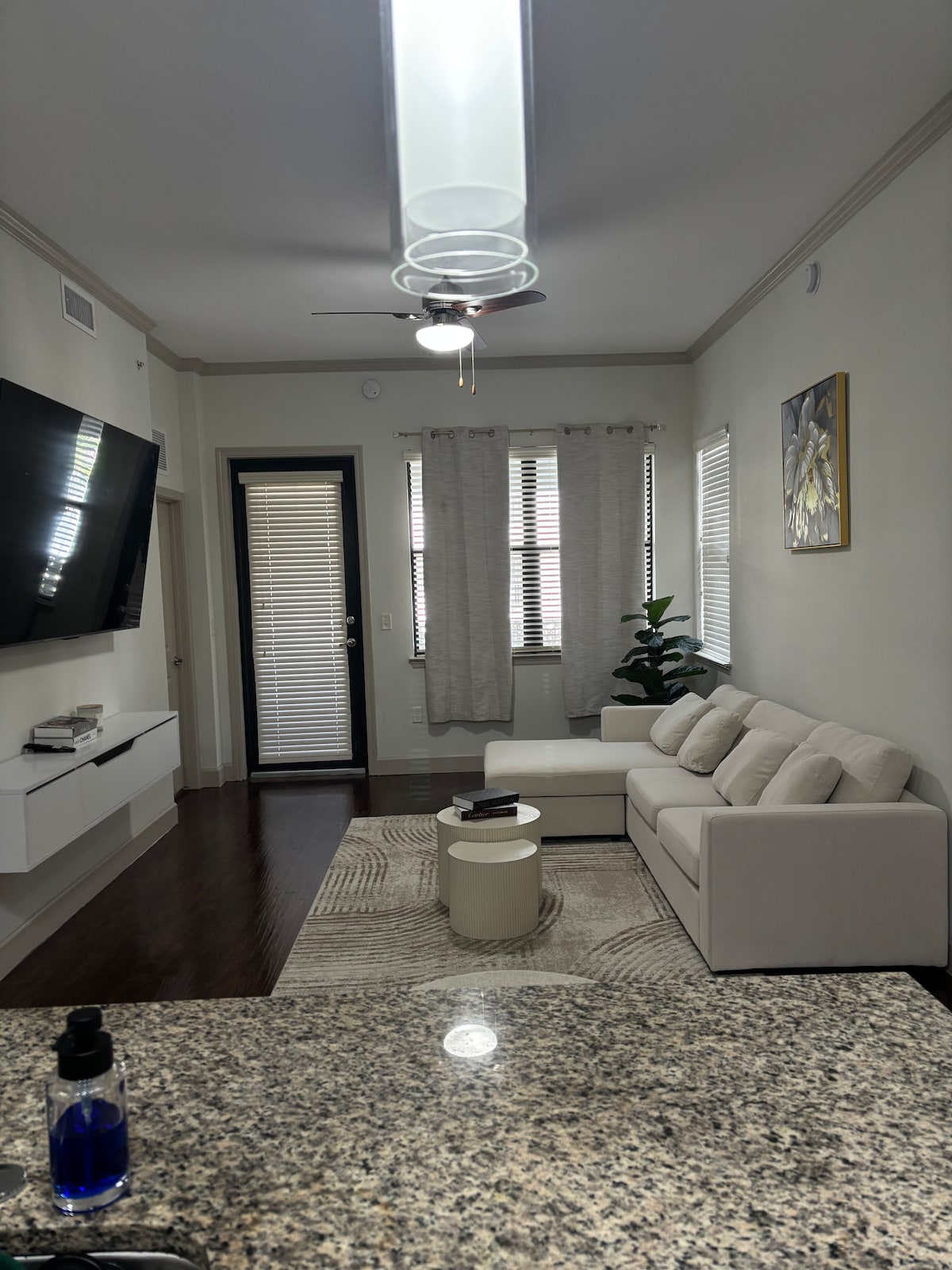 Detta är en nyrenoverad modern tillflyktsort från mitten av århundradet mitt i Pembroke Pines. Denna bekväma studio är idealisk för korttidsvistelser, med ett fullt utrustat kök, ett vackert uppdaterat badrum och ett rymligt vardagsrum. Koppla av i en bekväm queen-size-säng och en futon som öppnar upp till en dubbelsäng. Inkluderar gratis kaffe, toalettartiklar, snabbt WiFi och en smart-TV med streamingappar. Fördjupa dig i komfort och stil i detta inbjudande utrymme i livliga Pembroke Pines.