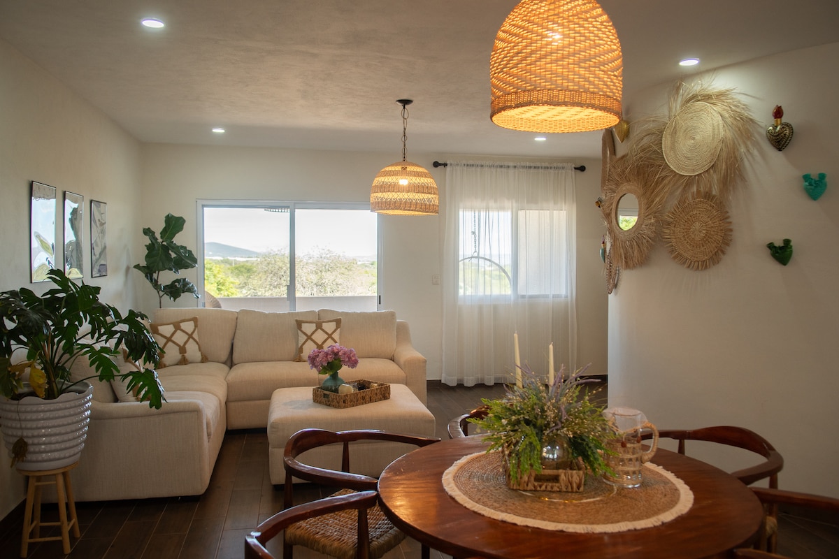 Det bästa stället att bo på i den magiska staden Bernal är vår vackra tvårumslägenhet. Den har en minimalistisk design som blandar materialen och floran som är karakteristiska för regionen för att uppnå en trevlig miljö som alltid kommer att inramas av Peña de Bernal, eftersom den var orienterad för att ha den bästa utsikten över monoliten. Vi ligger i stadens centrum, det är perfekt för att gå runt. Vi har övervakning hela tiden och den bästa terrassen.